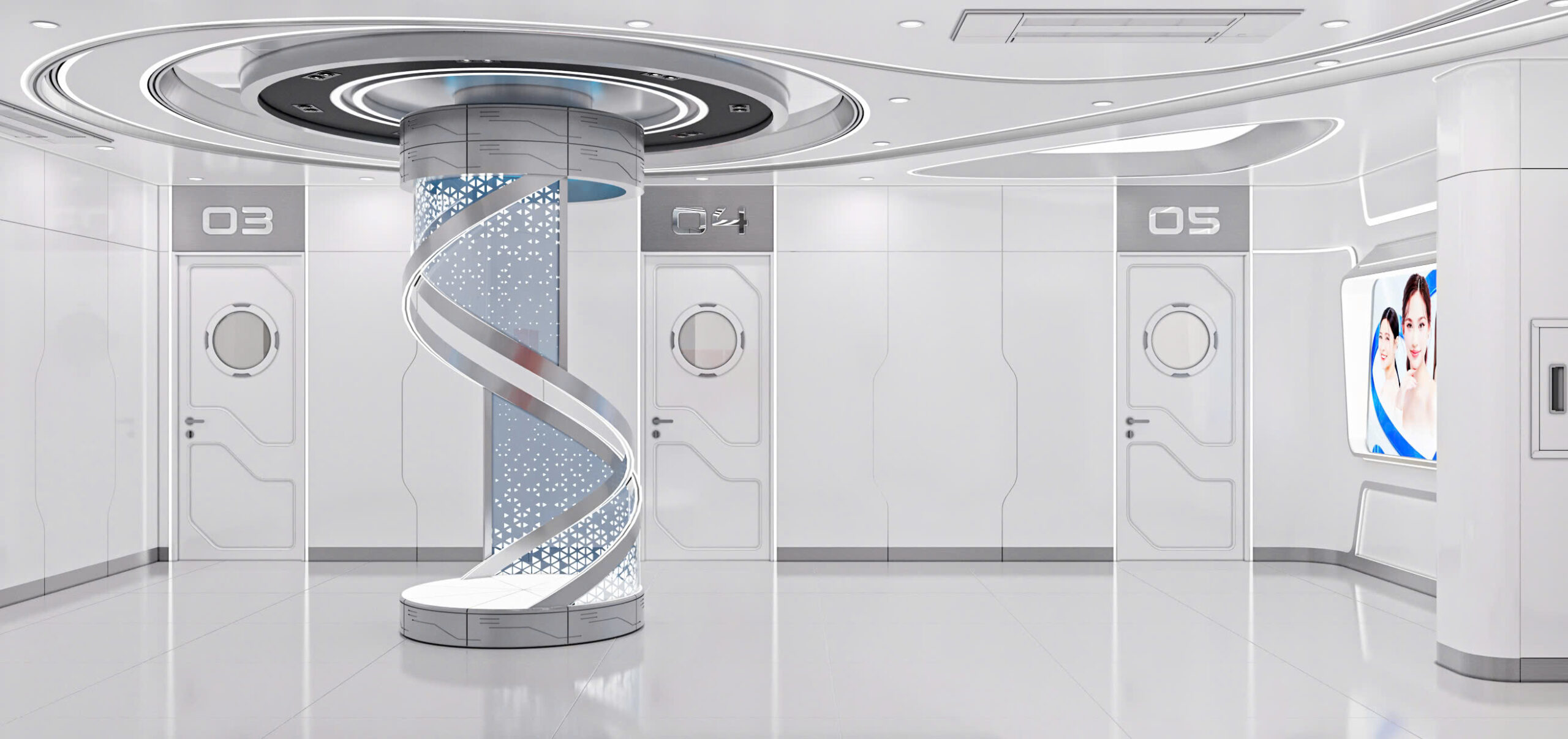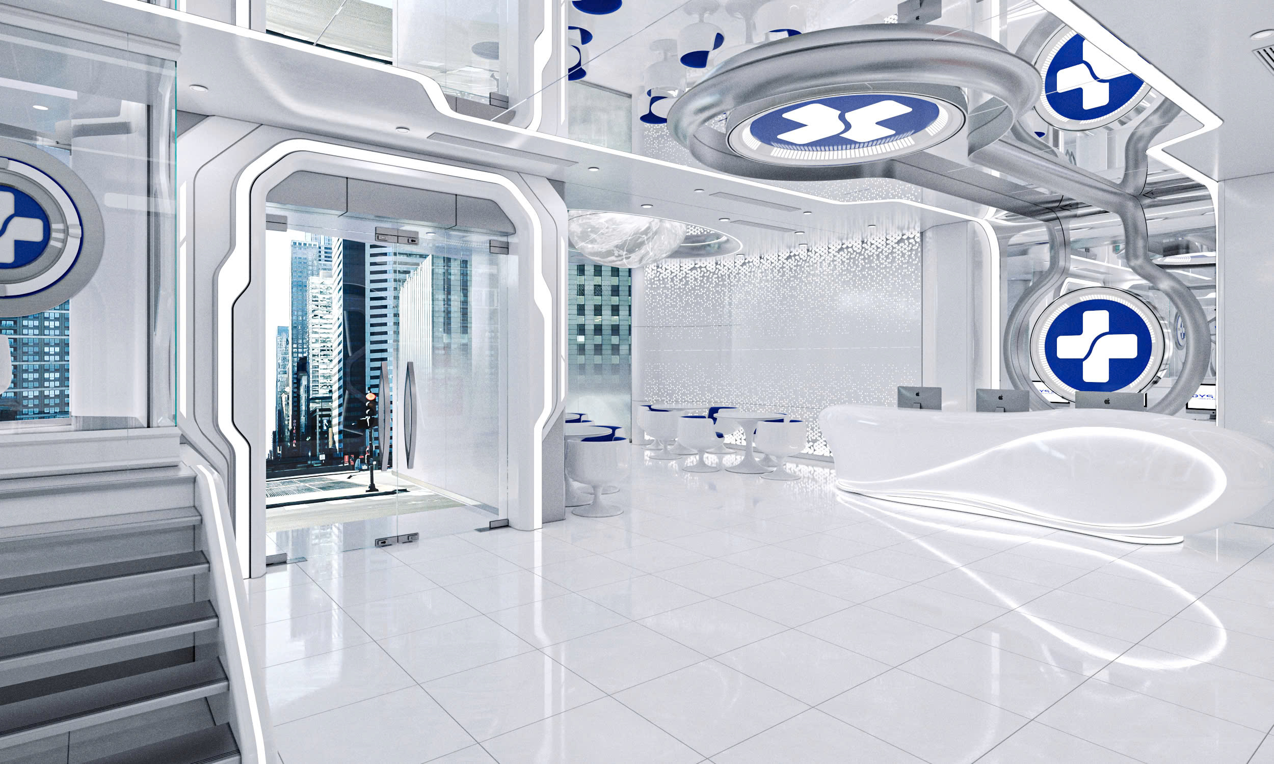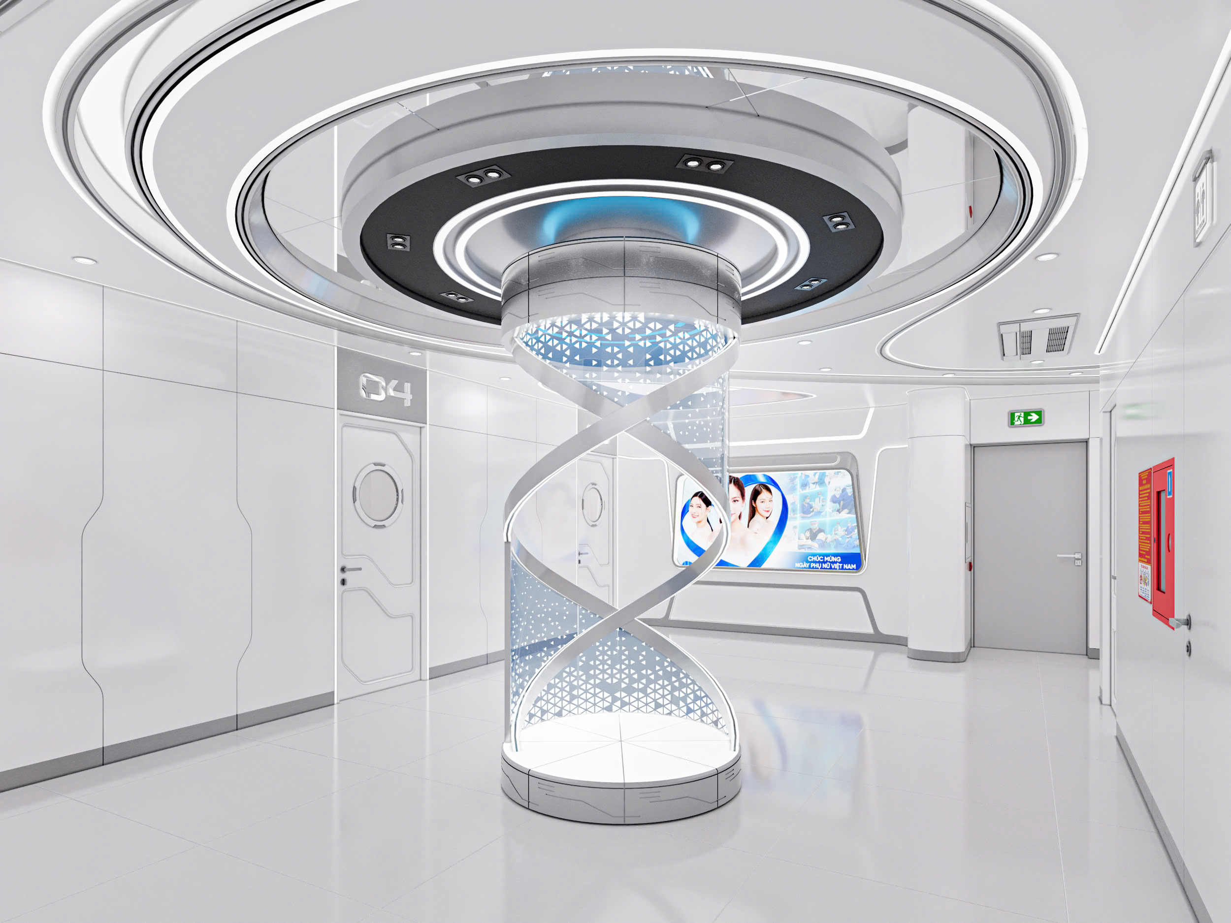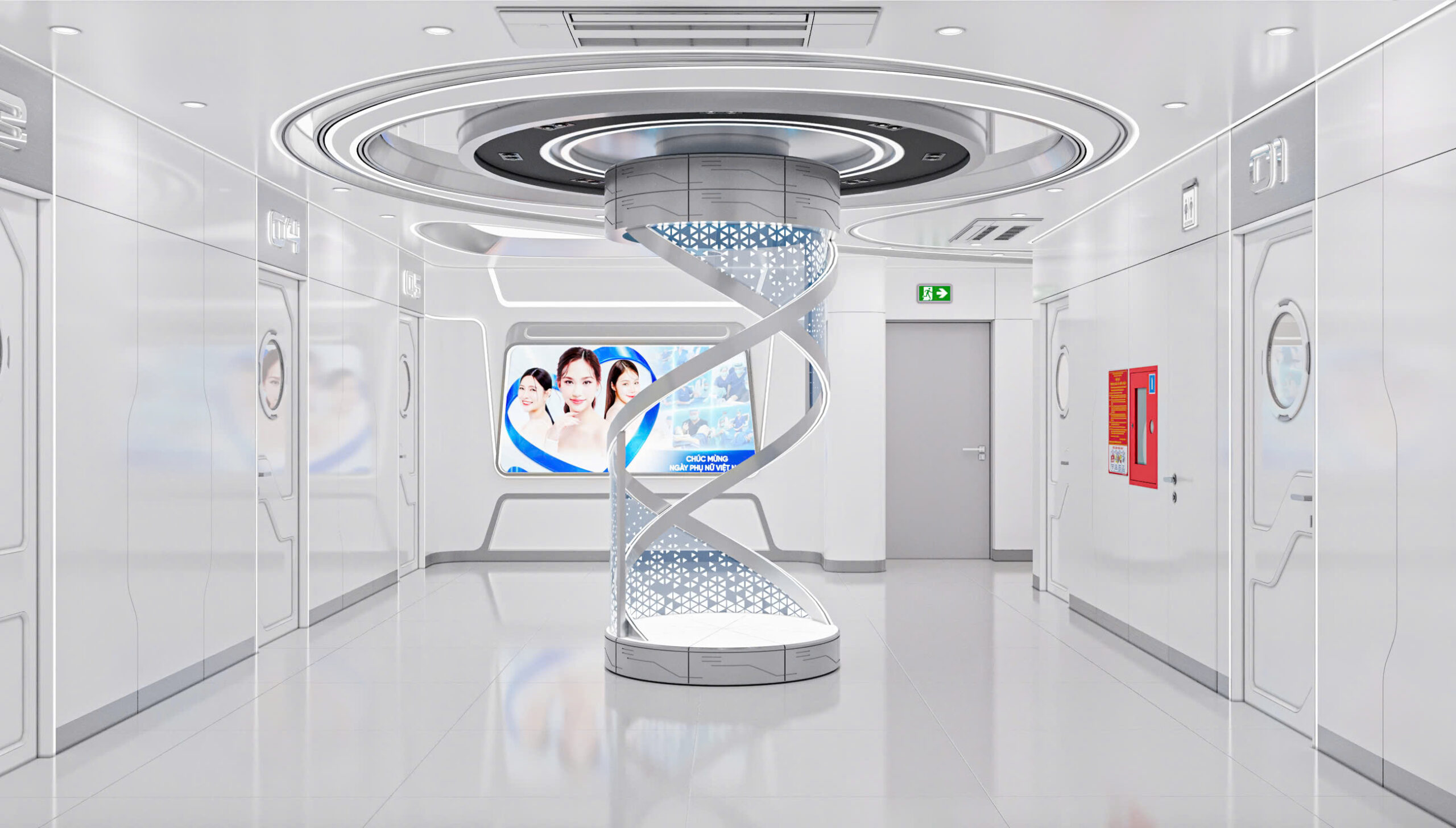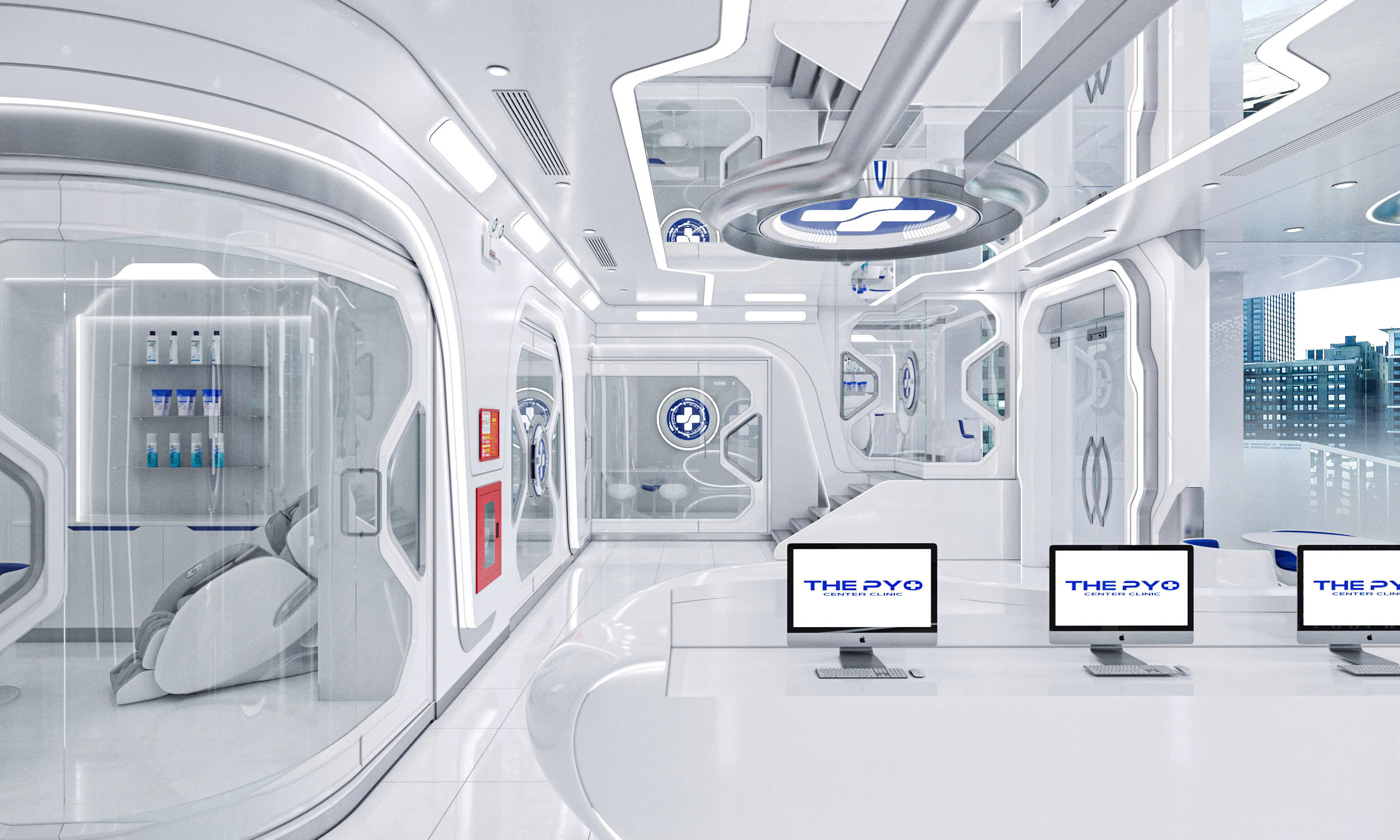 Không gian nội thất The Pyo Center Clinic được định hình rõ ràng theo phong cách futuristic – công nghệ cao (high-tech clinic), tạo nên một trải nghiệm khác biệt hoàn toàn so với các phòng khám thẩm mỹ truyền thống. Tổng thể thiết kế mang cảm giác như bước vào một “trung tâm y khoa của tương lai”, nơi thẩm mỹ, công nghệ và cảm xúc được kết nối liền mạch.