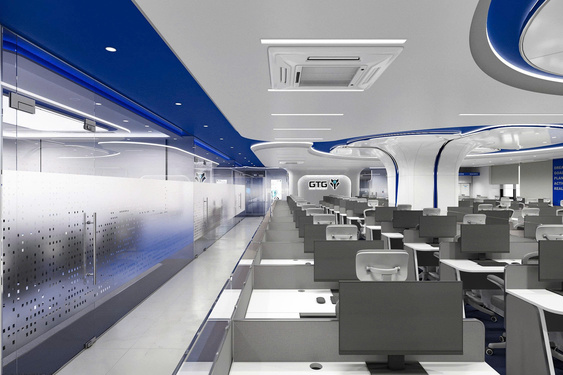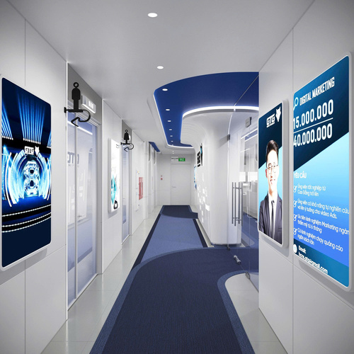 Không gian sử dụng tone trắng chủ đạo, kết hợp điểm nhấn xanh dương – màu sắc đặc trưng của lĩnh vực y khoa và công nghệ. Sự phối hợp này mang lại cảm giác sạch sẽ, vô trùng và chuyên nghiệp cũng như tâm lý an tâm, tin tưởng cho khách hàng, nhận diện thương hiệu rõ ràng và nhất quán.